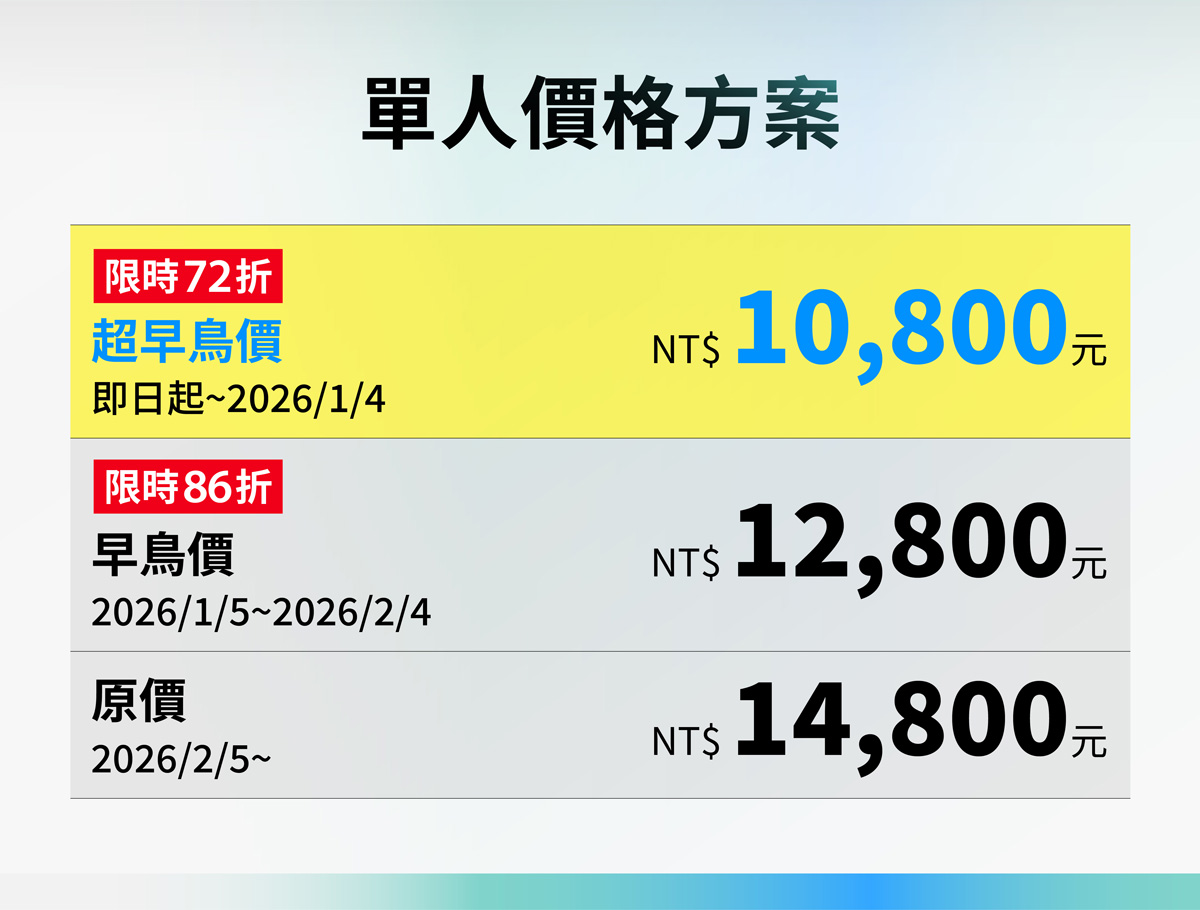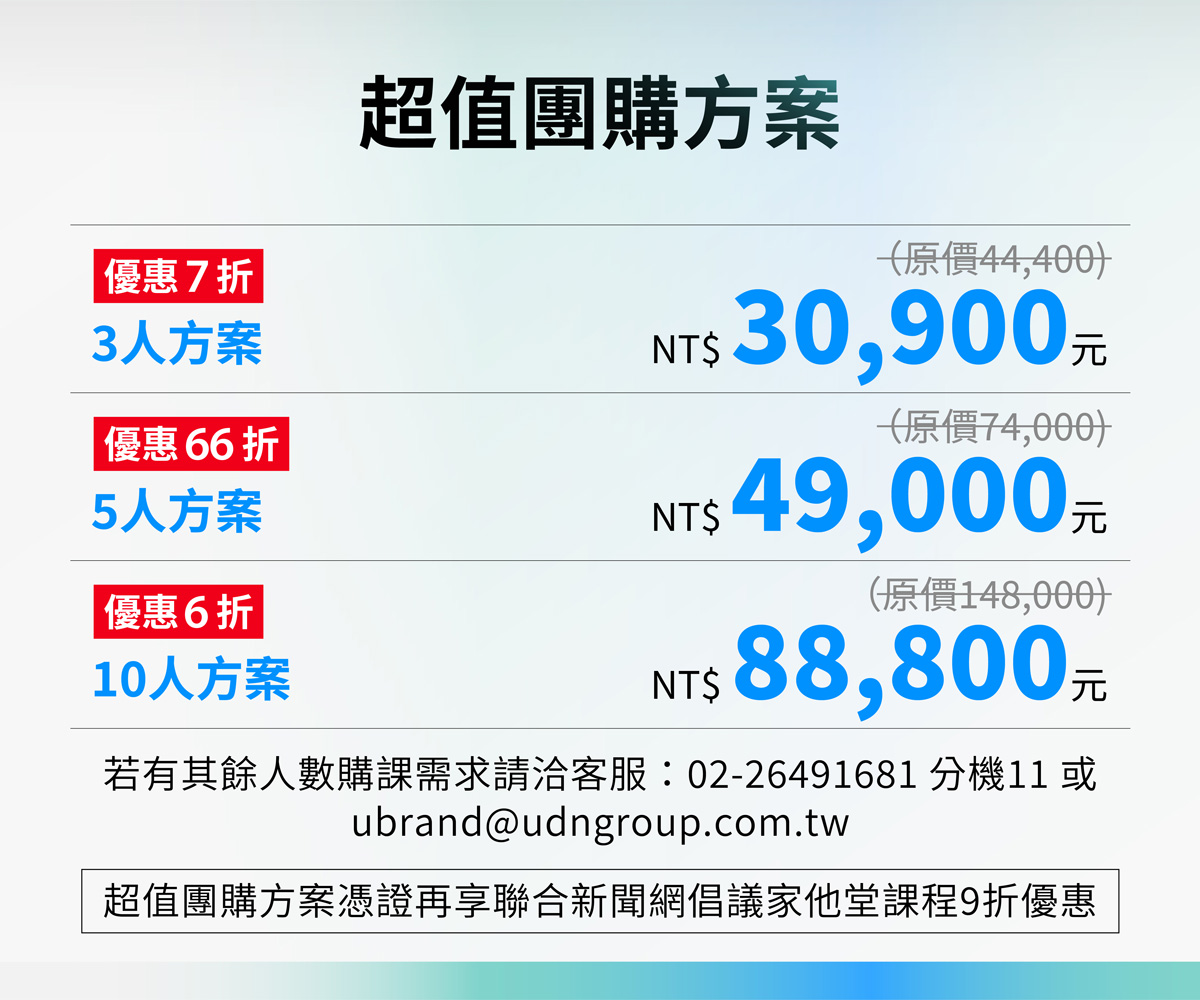 僅限「實體課程」可申請退款;實體課程開始前十個工作天內、以及開課日之後,恕不受理退款,但可轉讓他人使用。
